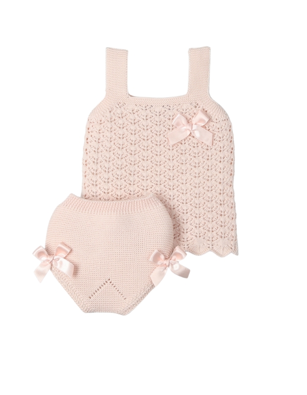 Este encantador conjunto de dos piezas es ideal para que tu peque luzca cómodo y adorable durante los días más cálidos. Está confeccionado en un suave, fresco y delicado punto perlé, pensado especialmente para cuidar su piel con total suavidad y transpirabilidad 🧶🍼