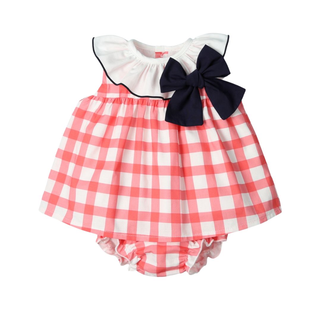 👗 Diseño lleno de dulzura. Su precioso estampado de cuadros blancos y rojos le da un aire clásico y atemporal. El cuello tipo volante con ribete en azul marino y el lazo a juego aportan un toque elegante y encantador. 🎀💫